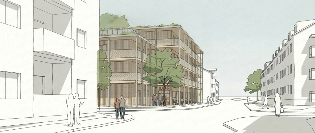 Projektet rymmer 40 lägenheter mellan 2-4 rum och kök samt en gemensam takterrass och bullerfri innergård.